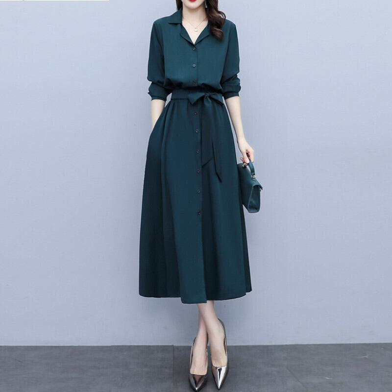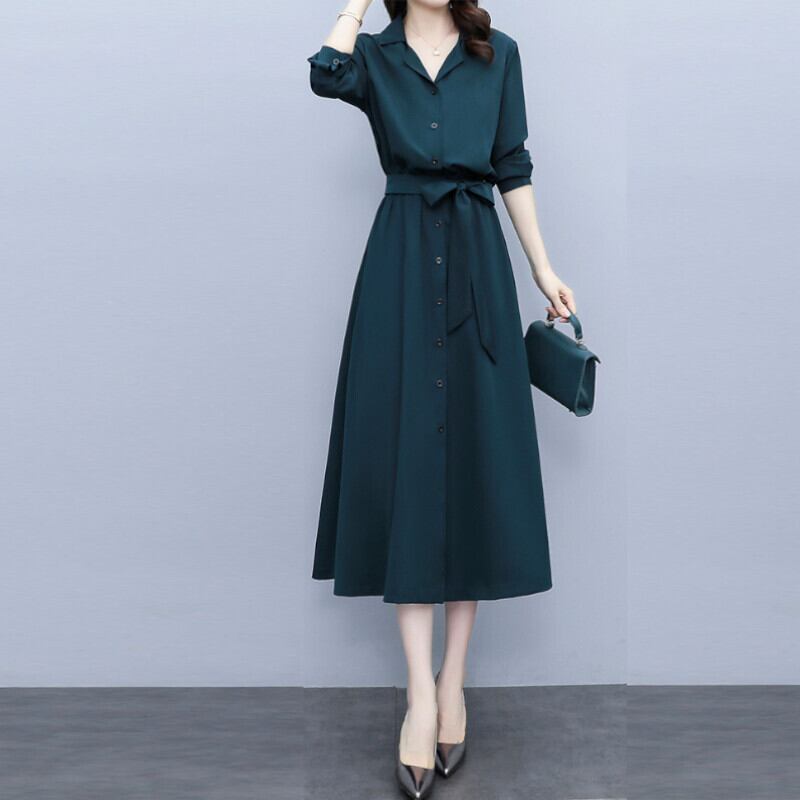 シャツワンピース ワンピース ミモレ丈 袖あり 長袖 Vネック Aライン ハイウエスト ウエストリボン ウエストゴム きれいめ シンプル カジュアル 上品 おしゃれ お洒落 レトロ こなれ感 キュート エレガント とろみ感 抜け感 スタイリッシュ 無地 春 夏 10代 20代 30代 40代 女性用 デート お出かけ 女子会 休日 リゾート 旅行 着回し 普段使い 韓国 韓国系 オルチャン ファッション コーデ スタイル 楽ちん モテ 体型カバー 美脚 脚長 グリーン M L XL 2XL 3XL 4XL | Come to Store