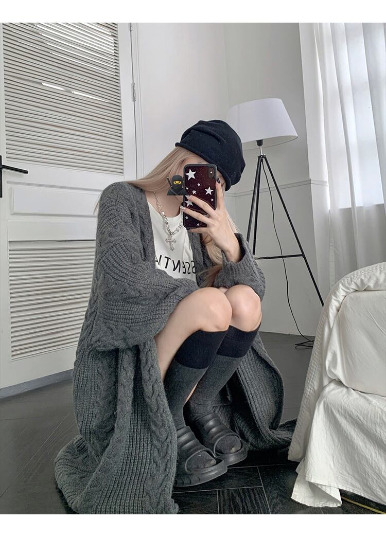 オーバーでゆったりとしたサイズ感が華奢見せや抜け感を演出するケーブル編みニットカーディガン。