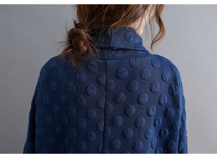 ぷっくりとしたドット柄が他と差がつくおしゃれなハイネックワンピース。