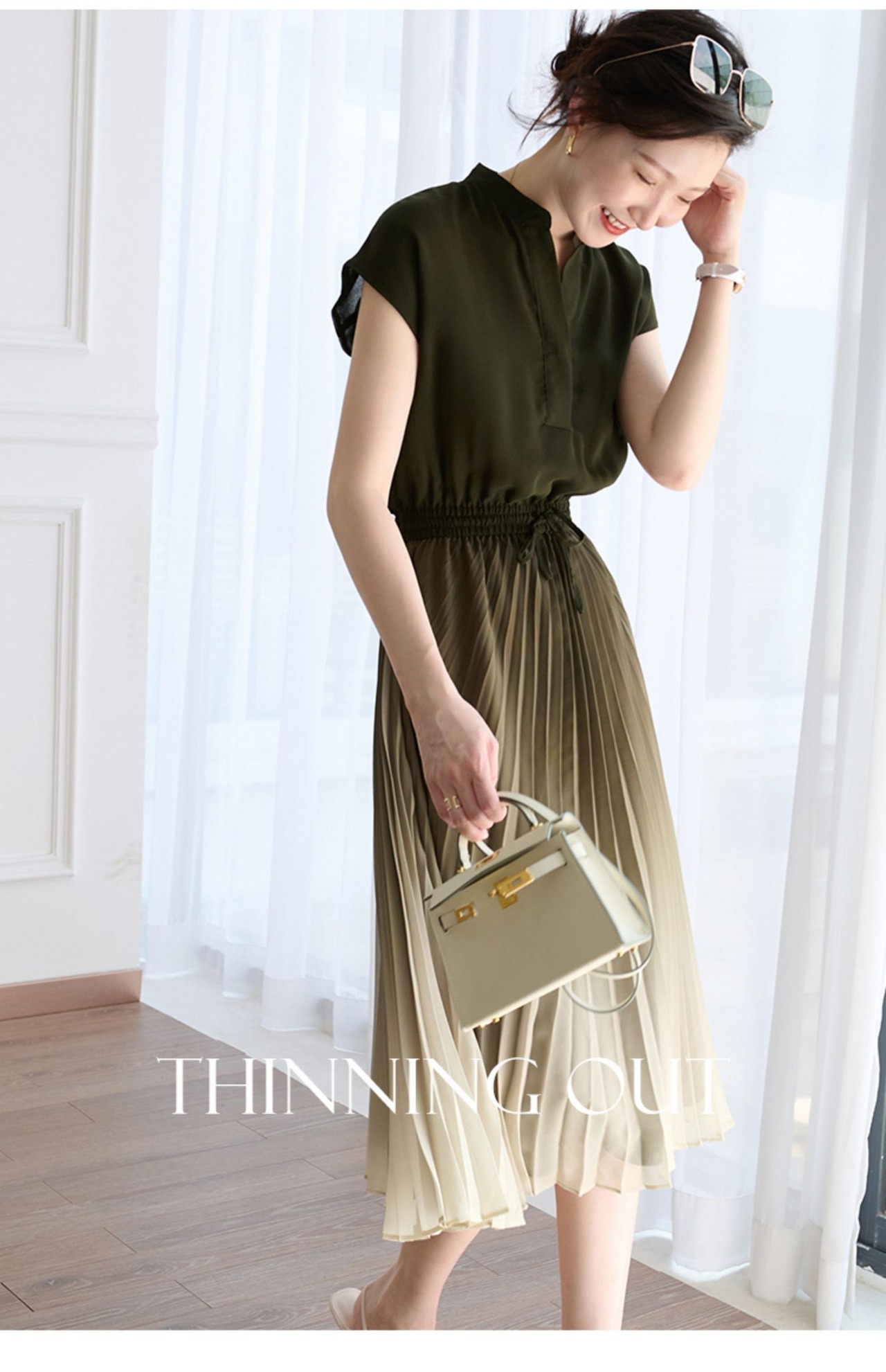 美人度アップ!シックなグラデーションのプリーツフレアワンピース。