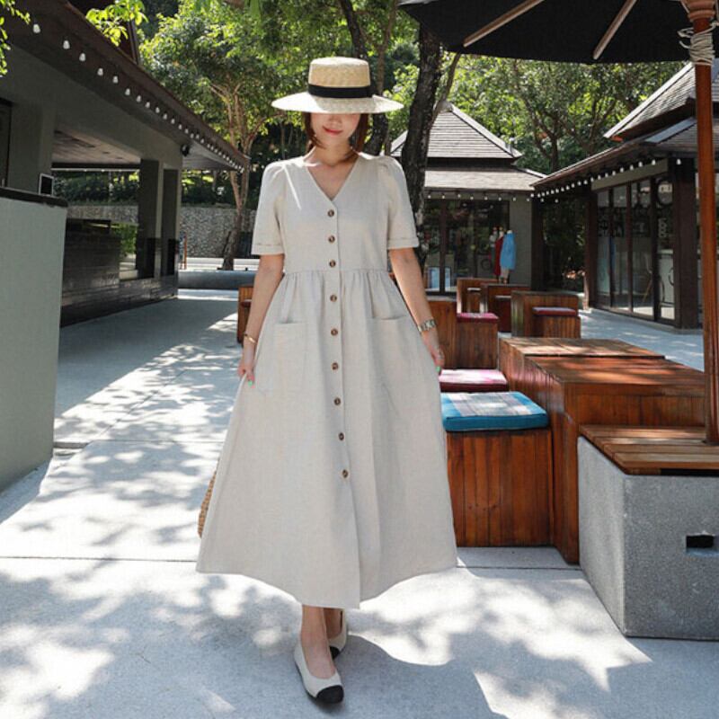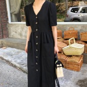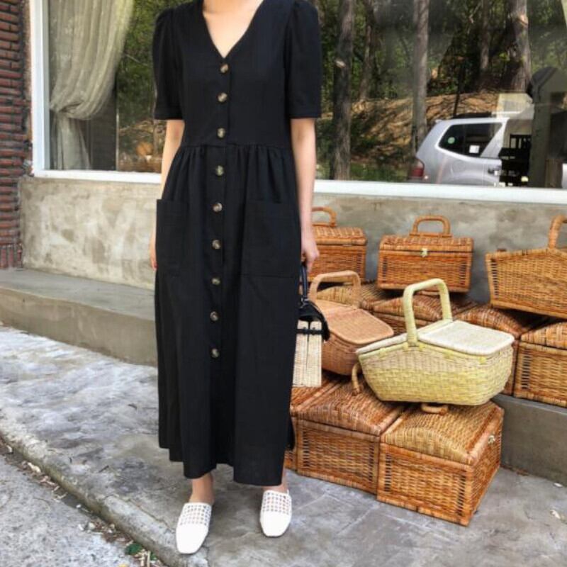 ワンピース シャツワンピ ロング丈 袖あり 半袖 Vネック フロントボタン かわいい 大人可愛い きれいめ シンプル カジュアル 大人 上品 おしゃれ レトロ 大人女子 こなれ感 ラフ 春 夏 10代 20代 30代 40代 女性用 オフィス 学生 デート お出かけ 女子会 休日 リゾート 旅行 着回し 普段使い 韓国 韓国系 オルチャン ファッション コーデ スタイル 楽ちん モテ 体型カバー 定番 トレンド 流行 インスタ映え ゆったり S M L XL 大きいサイズ ブラック ホワイト | Come to Store