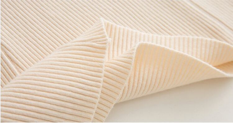 リブ処理でスリムにフィットするため女性らしい雰囲気を演出してくれます。
