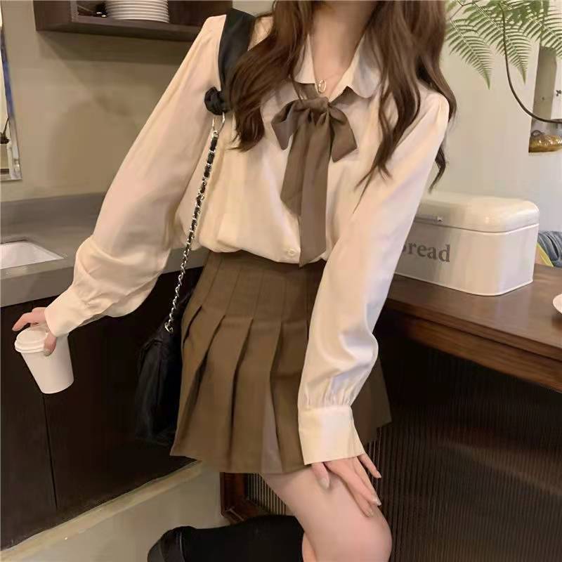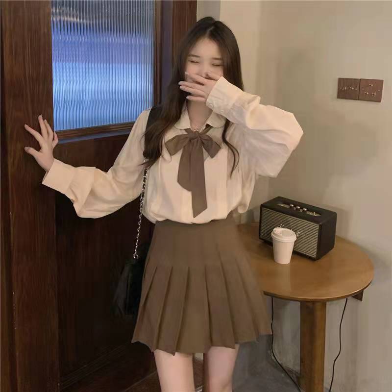 学生風 セットアップ 上下セット 2点セット トップス スカート シャツ 白シャツ ミニスカート プリーツスカート ミニ ミニ丈 ショート ショート丈 長袖 襟付き プリーツ かわいい シンプル カジュアル ラブリー キュート ガーリー ルーズ 通学 学生 韓国 韓国系 オルチャン ファッション コーデ スタイル 美脚 脚長 インスタ映え S M L XL 2XL 10代 20代 春 夏 秋 レディース 女性用 女の子 無地 主役級 存在感 フォーマル とろみ感 抜け感 | Come to Store