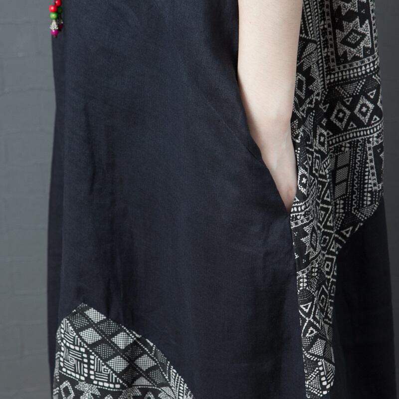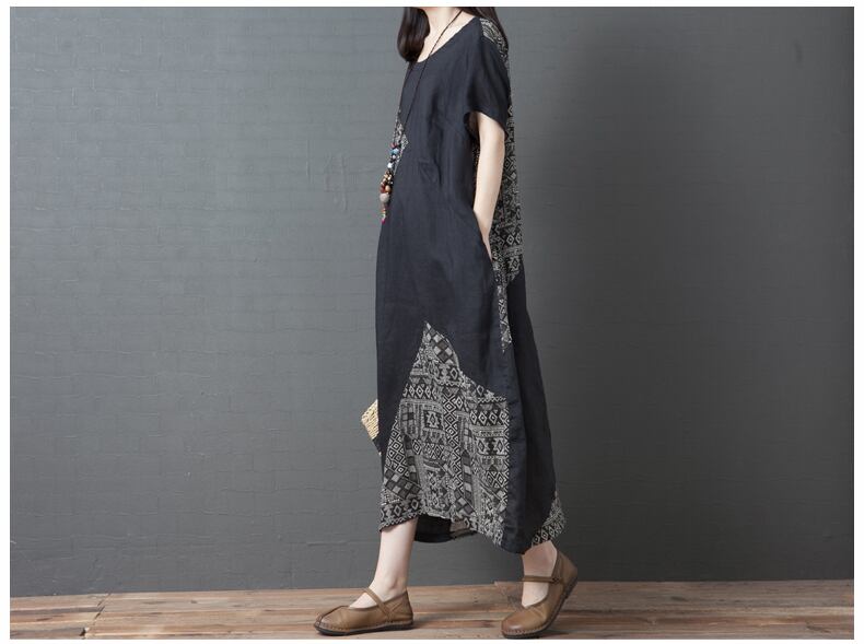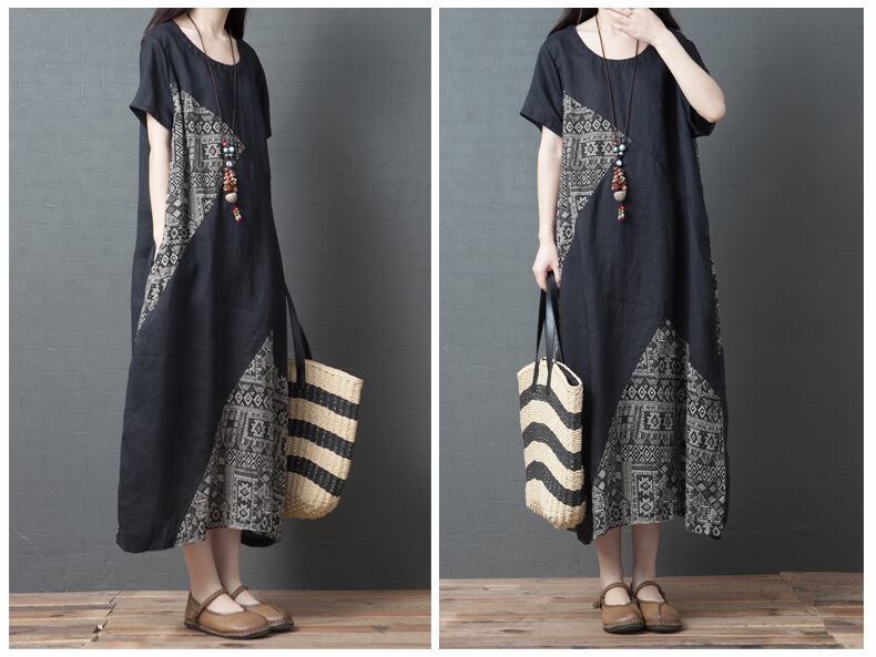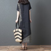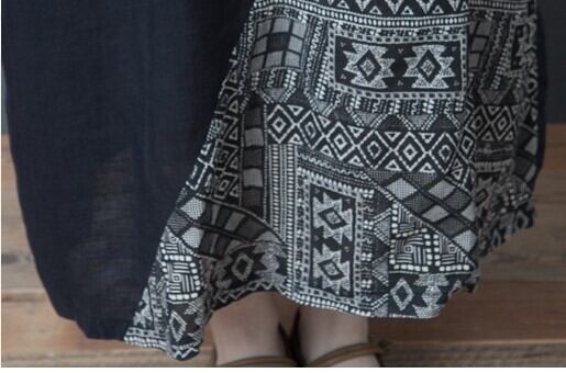無地と柄の切り替えデザインが目を引くナチュラルなワンピースです。