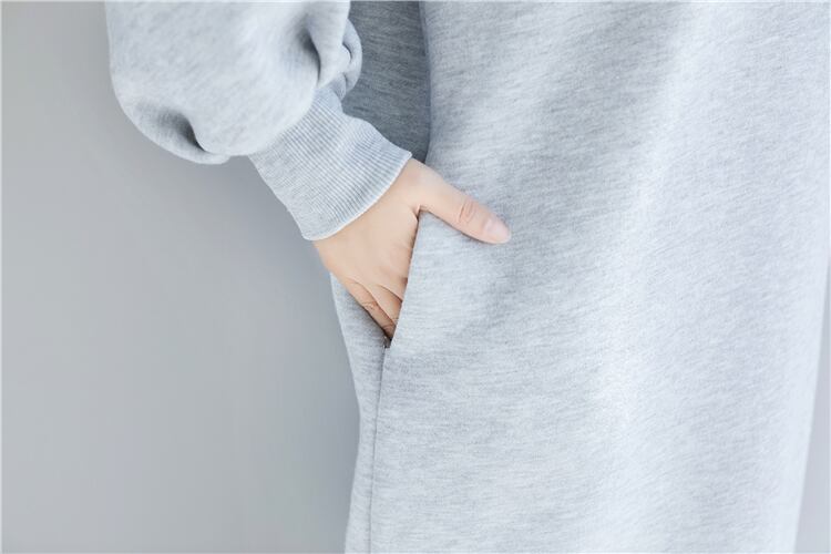 シンプルなIラインシルエットと、ドロップショルダーとほんのりボリューム袖で抜け感のある、パーカーワンピース。