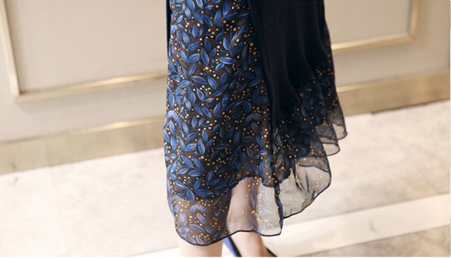 ドッキングワンピース セーター シフォンスカート 膝下 ミモレ ミモレ丈 ミディアム丈 袖あり 長袖 ハイネック ドッキング シフォン ウエストマーク ウエストリボン サイドスリット リブ 透け感 シースルー ニット 大人可愛い きれいめ 大人 上品 おしゃれ お洒落 大人女子 エレガント 花柄 小花柄 春 秋 20代 30代 40代 50代 ママ OL 通勤 学生 通学 デート お出かけ 女子会 休日 重ね着 コーデ モテ スタイルアップ サイズ S M L 色展開 黒 ブラック ネイビー 紺色 | Come to Store