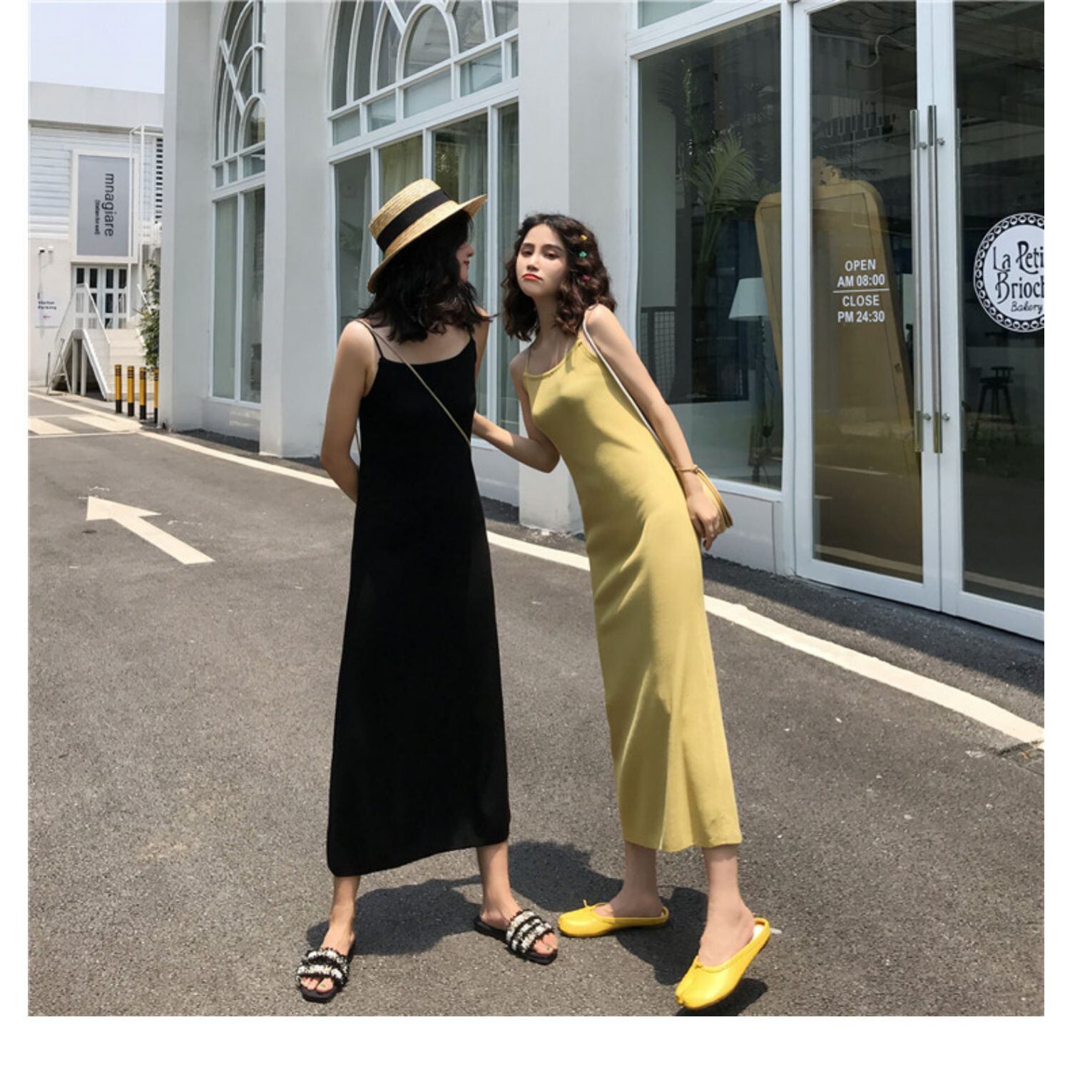 華奢なストラップや、バックスリットデザインなど、ディテールからレディライクなルックスに導きます。