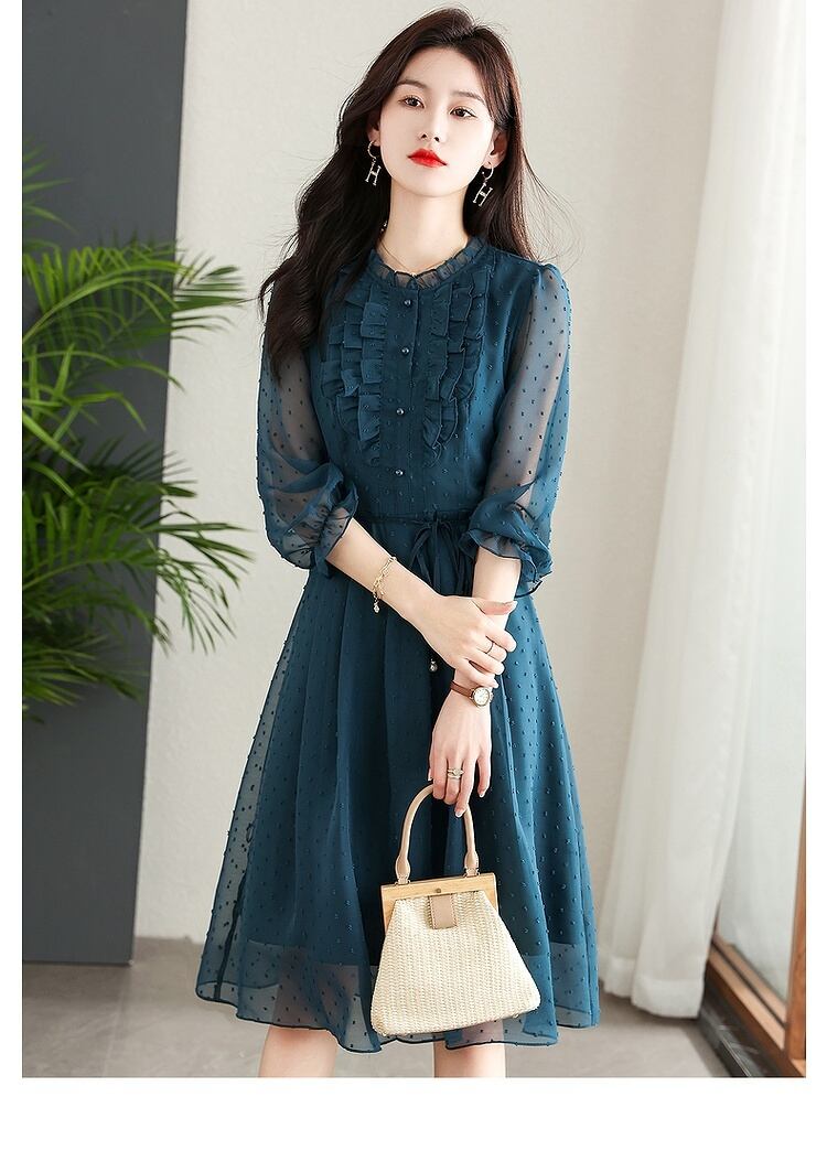シフォンワンピース フリルネックワンピース ワンピース ブラウス フレアワンピース 膝丈 ひざ丈 膝下 袖あり 長袖 ボリューム袖 キャンディスリーブ フリルスリーブ フリルネック フレア セミフレア レース チュール シフォン フリル リボン ウエストマーク ウエストリボン 透け感 シースルー ふんわり 軽やか 薄手 かわいい 大人可愛い きれいめ 上品 おしゃれ お洒落 大人女子 こなれ感 ラブリー キュート ガーリー 主役級 とろみ感 着やせ クラシカル ドット柄 水玉 春 夏 20代 30代 | Come to Store