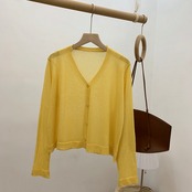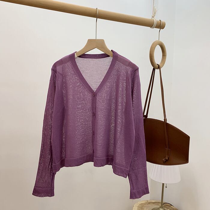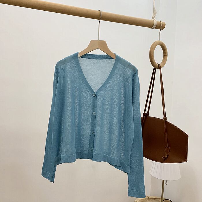 涼やかな素材感を定番シルエで仕上げたVネックサマーニットカーディガン。