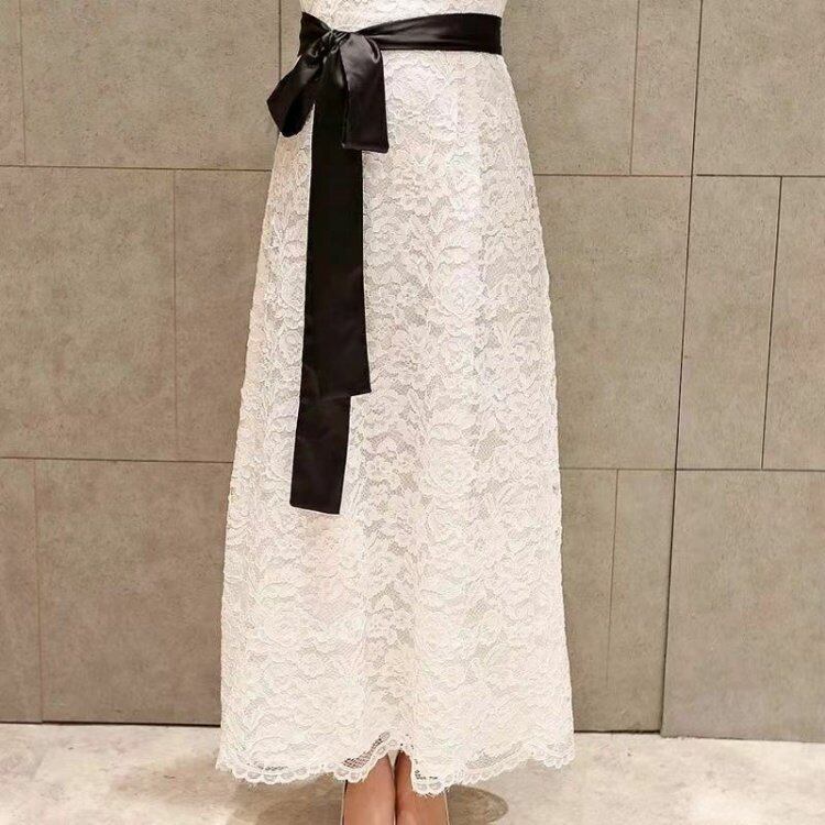 レースのデザインが繊細でエレガントなドレスワンピースです。