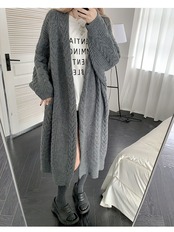 ケーブル編み ロング ニット カーディガン トップス アウター 膝下 ロング丈 袖あり 長袖 ボリューム袖 ドロップショルダー 萌袖 Vネック Iライン もこもこ モコモコ ポケット 前開き ケーブルニット 編み込み ニット かわいい 大人可愛い シンプル カジュアル 大人 こなれ感 ラフ ラブリー キュート 存在感 抜け感 模様編み 秋 冬 10代 20代 30代 40代 50代 60代 レディース OL 通勤 学生 通学 デート お出かけ 休日 着回し 普段使い 重ね着 楽ちん 体系カバー 流行 | Come to Store