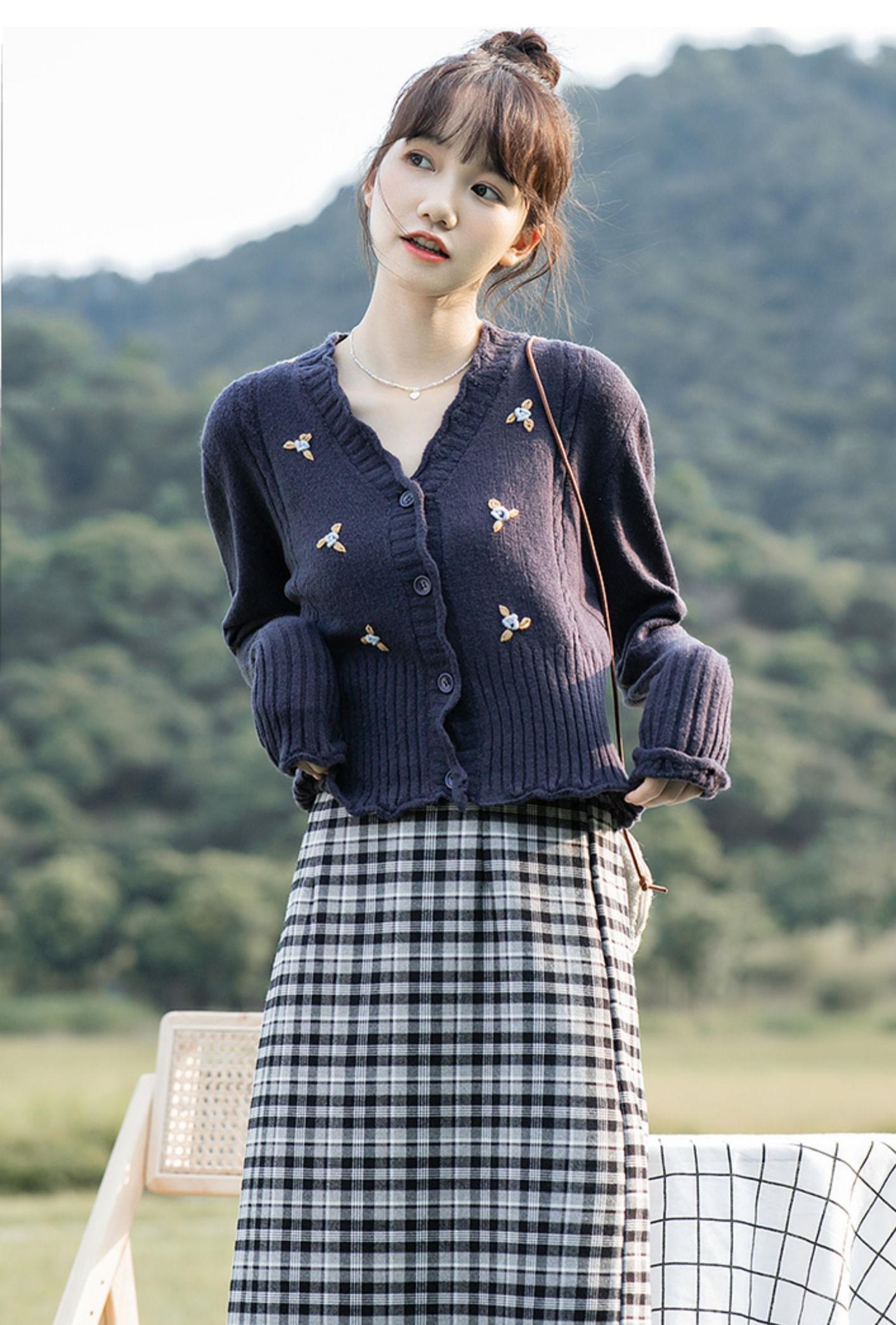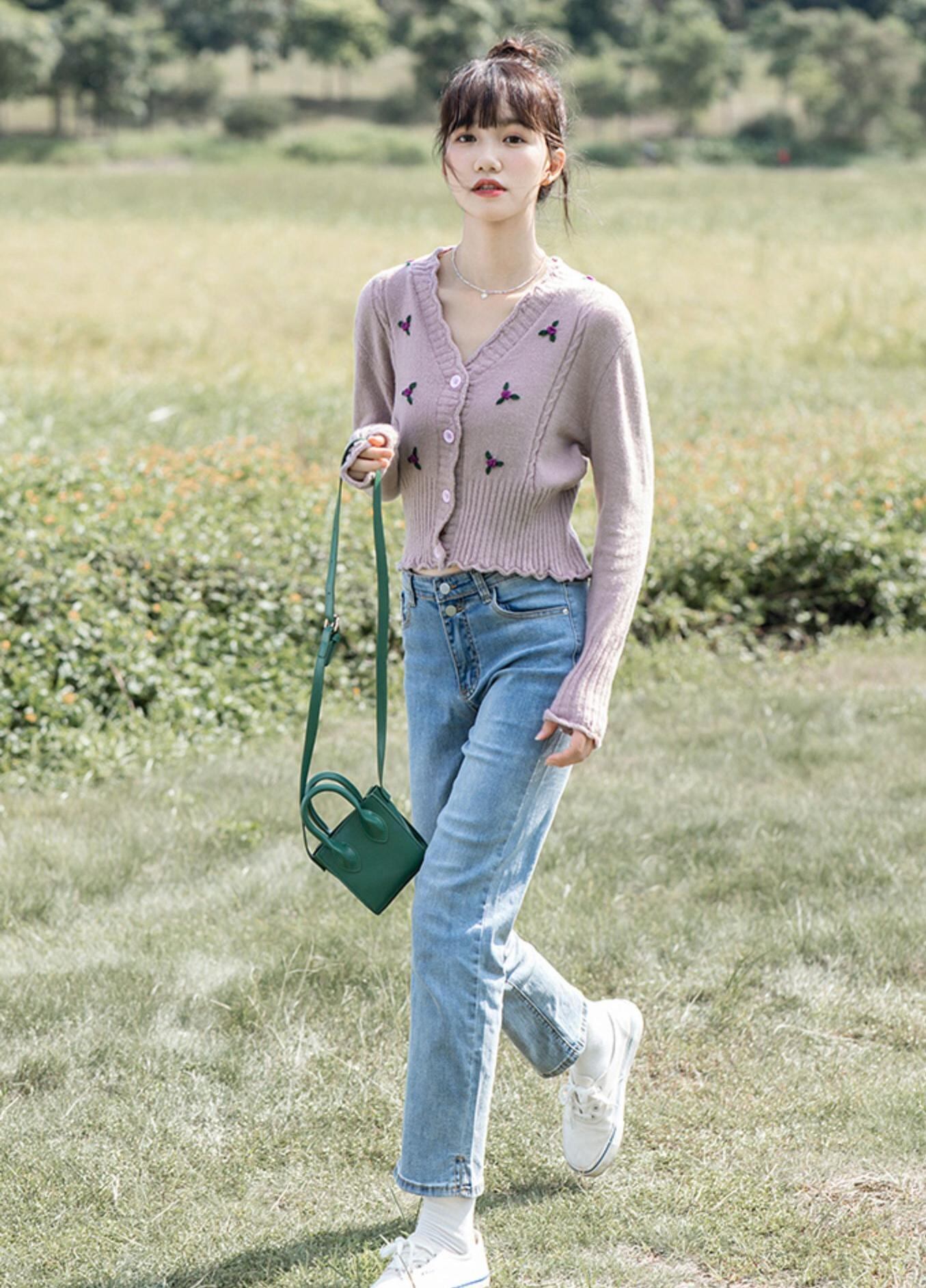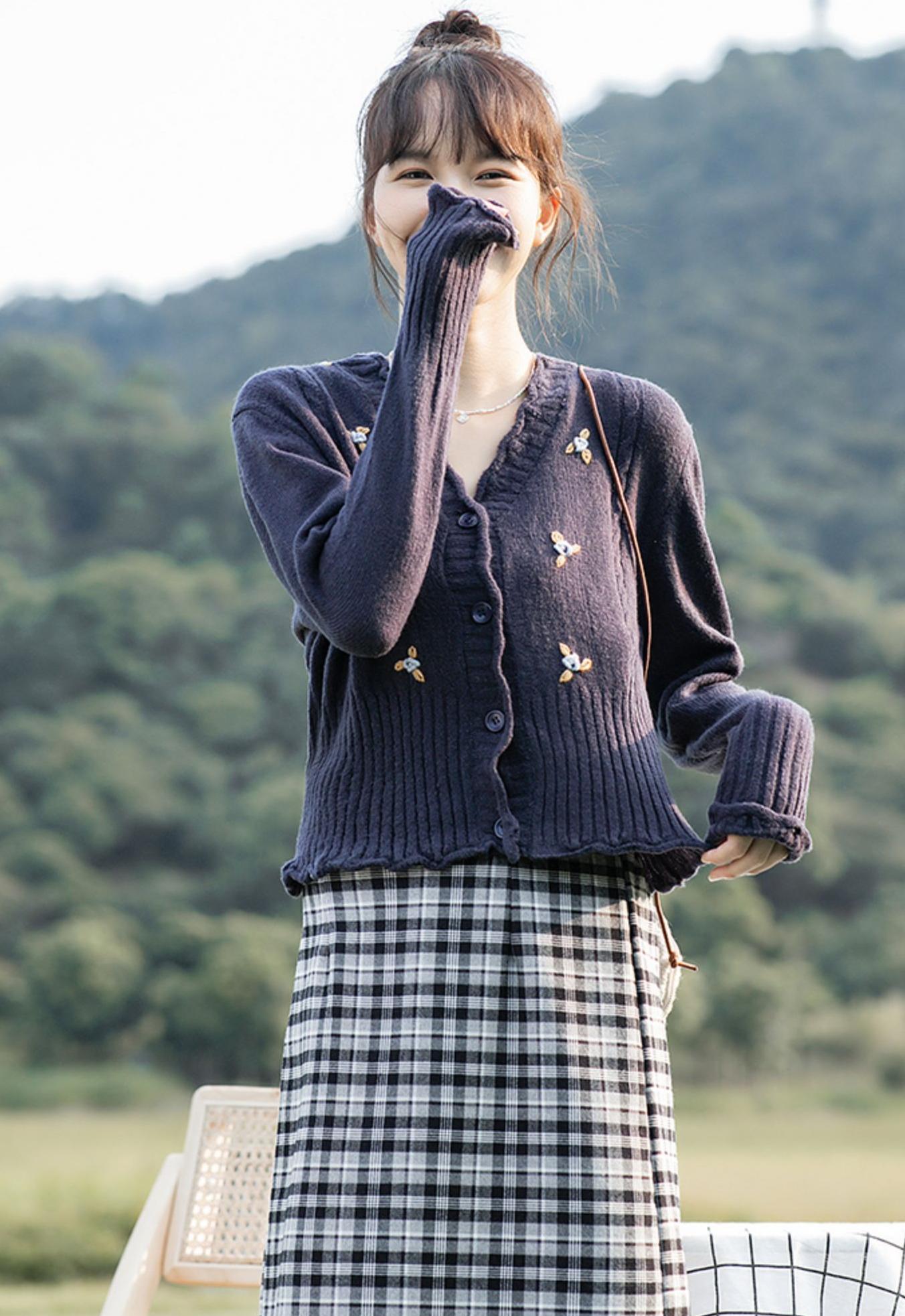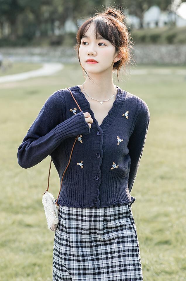 韓国の女の子が着ていそうな刺繍がお洒落なカーディガン