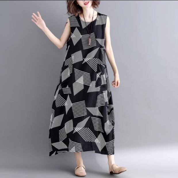 幾何学模様がおしゃれなロングワンピースです。