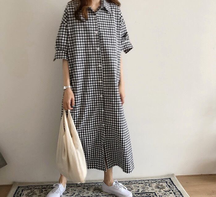 ブラックの落ち着きのあるギンガムチェック柄シャツワンピース です。