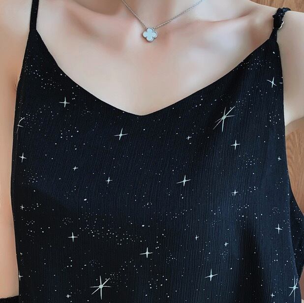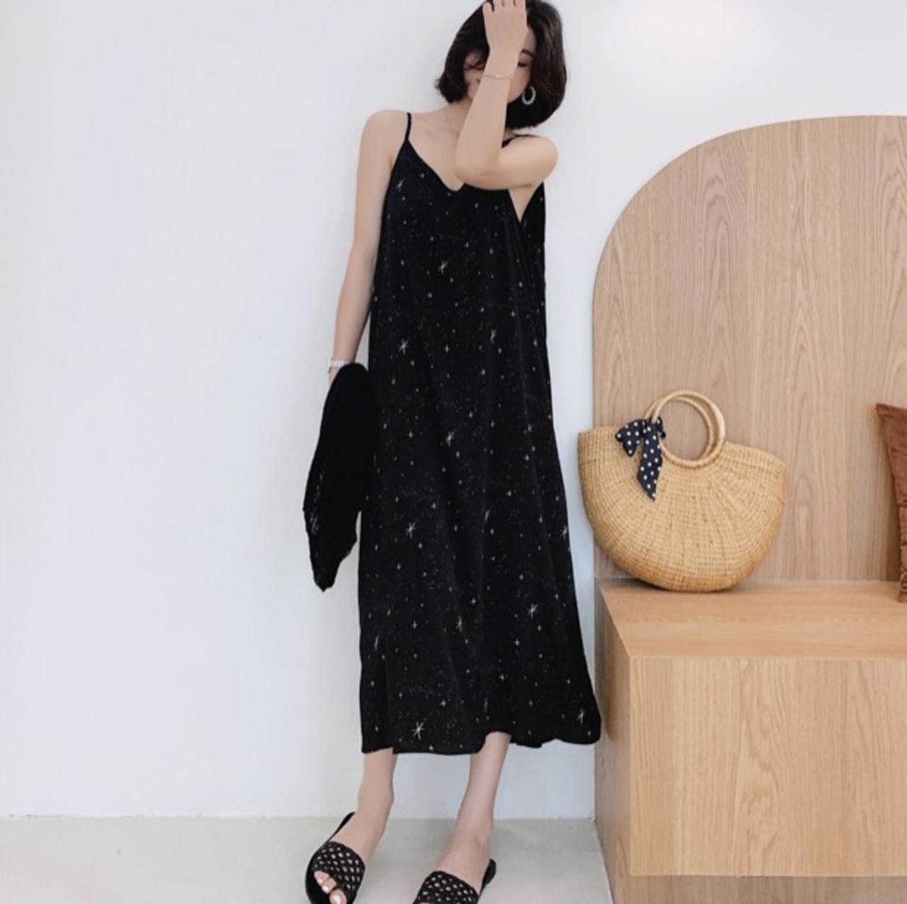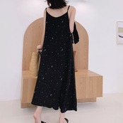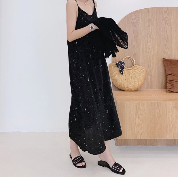 キラッとした星屑の柄が大人ガーリーなキャミワンピースです。