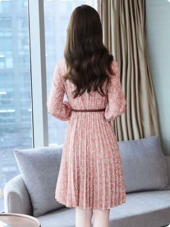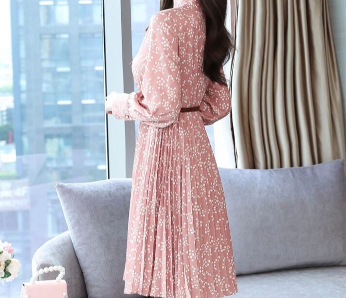 柔らかいピンクの色味が大人可愛いワンピースです。