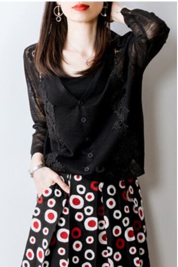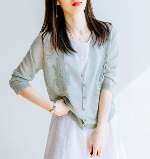 上品な刺繍入りカーディガン。