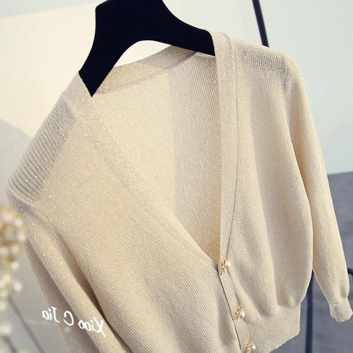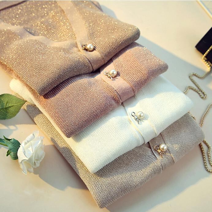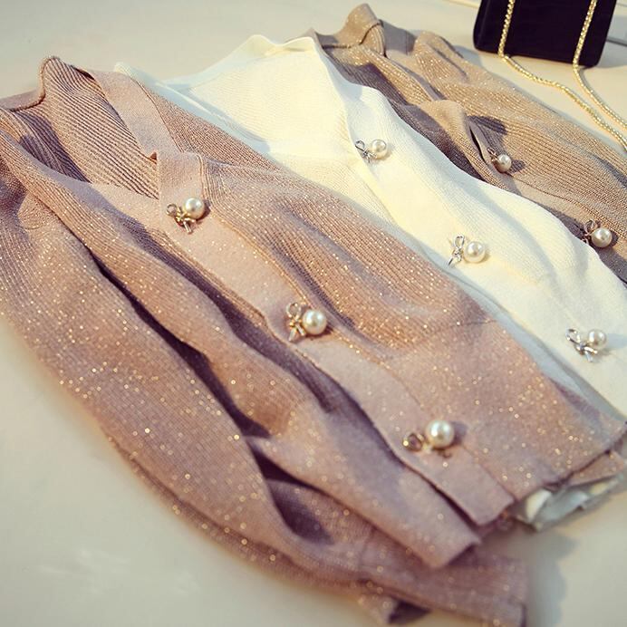 ボタンのパールが可愛らしいカーディガン