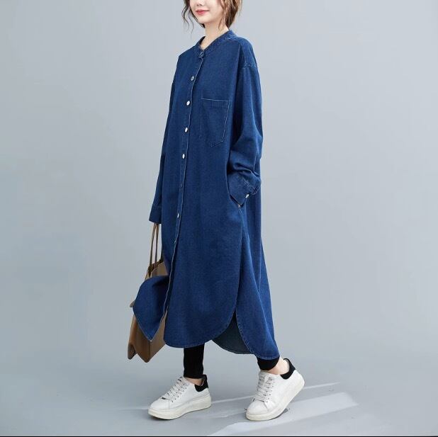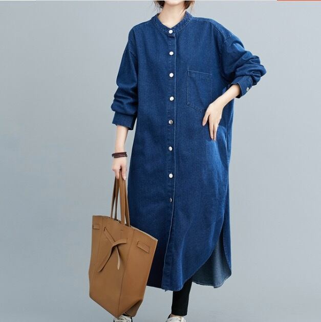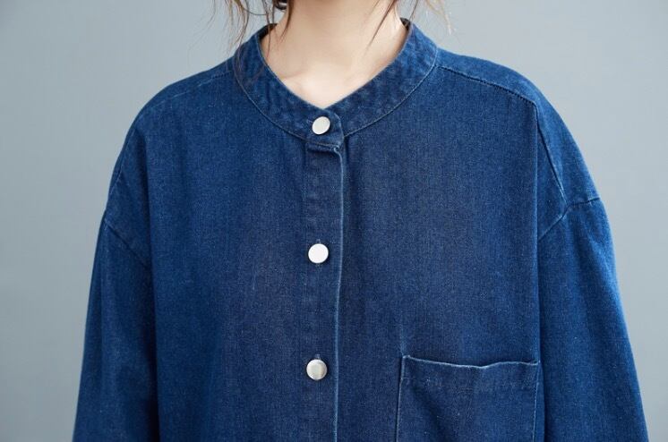 シンプルなスタンドカラー のシャツワンピースです。