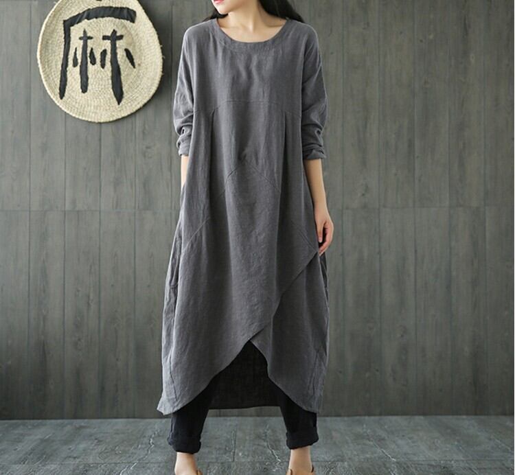 ワンピース ワンピドレス ロング ロング丈 袖あり 長袖 ラウンドネック 襟なし ストレート Iライン ポケット かわいい 大人可愛い シンプル カジュアル 大人 おしゃれ お洒落 レトロ アジアン エスニック エキゾチック 大人女子 個性的 無地 春 秋 20代 30代 40代 レディース 女性用 デート お出かけ 公園デビュー 女子会 休日 旅行 ホテル ガーデン レストラン 普段使い サイズ M L XL 2XL 3XL 4XL 5XL 大きいサイズ 色展開 ブラック グリーン グレー カラバリ | Come to Store