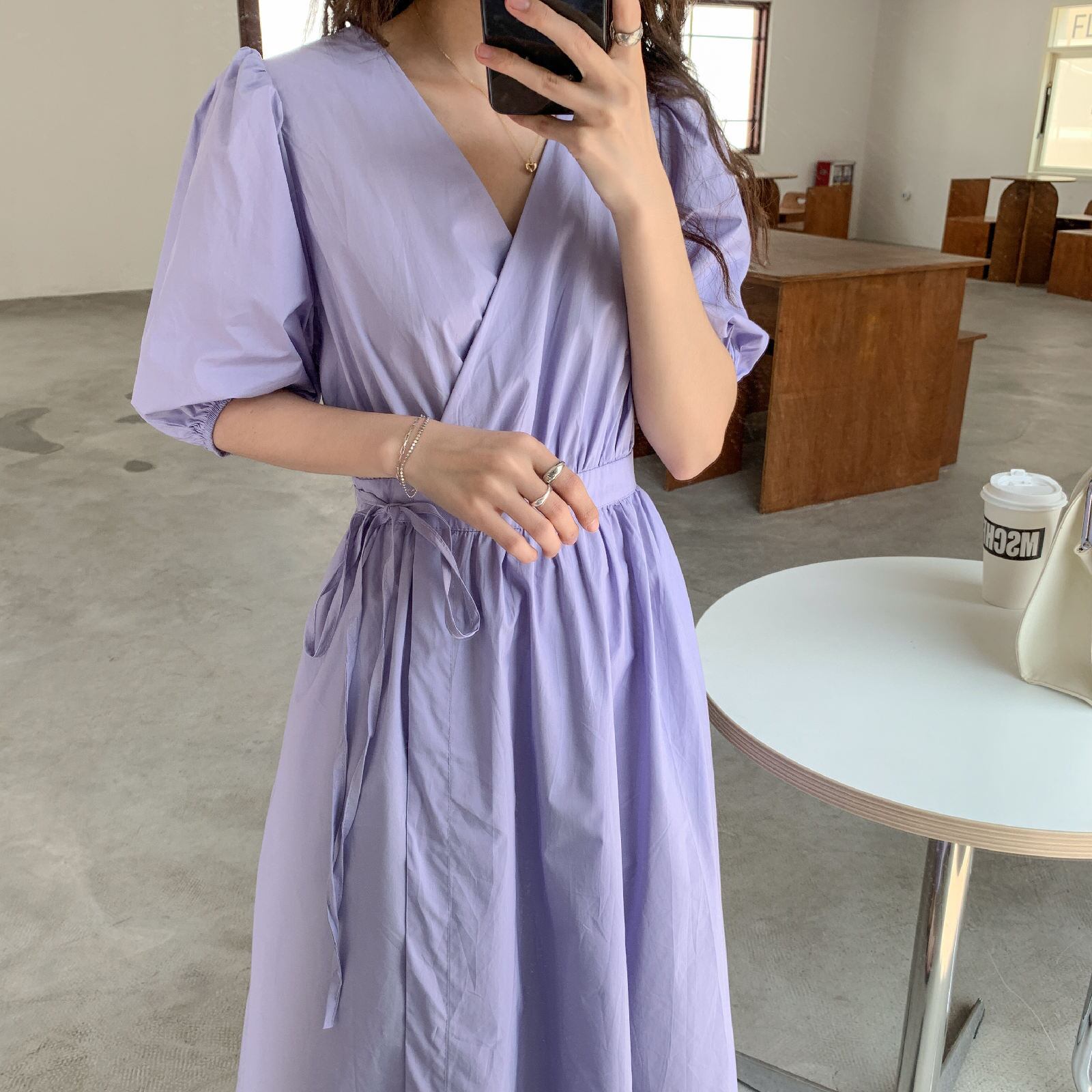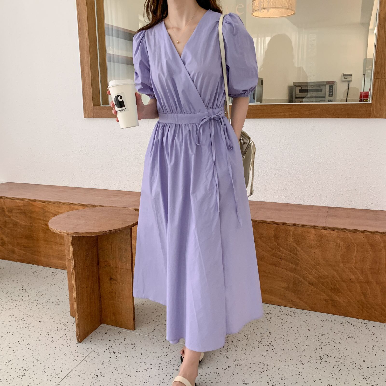 ワンピース ワンピドレス 膝下 ロング ロング丈 袖あり 半袖 パフスリーブ 萌袖 カシュクール 襟なし セミフレア Aライン ウエストリボン ポケット ハイウエスト 綿 リネン かわいい 大人可愛い シンプル カジュアル 大人 おしゃれ アジアン エスニック エキゾチック 無地 夏 秋 20代 30代 レディース 女性用 通勤 デート お出かけ 公園デビュー 女子会 休日 リゾート 旅行 海 ガーデン 普段使い サイズ S M L XL 色展開 ホワイト パープル ピンク カラバリ ライトブルー | Come to Store