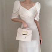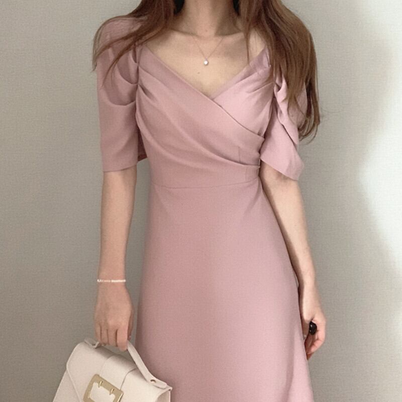 ワンピース 袖あり 半袖 パフスリーブ Vネック カシュクール かわいい きれいめ カジュアル 大人 おしゃれ お洒落 レトロ アジアン こなれ感 ラフ ガーリー エレガント フォーマル とろみ感 無地 春 夏 10代 20代 30代 40代 通勤 デート お出かけ 女子会 パーティー イベント ホテル レストラン お呼ばれ 着回し 普段使い 重ね着 韓国 韓国系 オルチャン ファッション コーデ スタイル モテ 体型カバー トレンド 流行 インスタ映え S M L 色展開 白 ホワイト ピンク | Come to Store