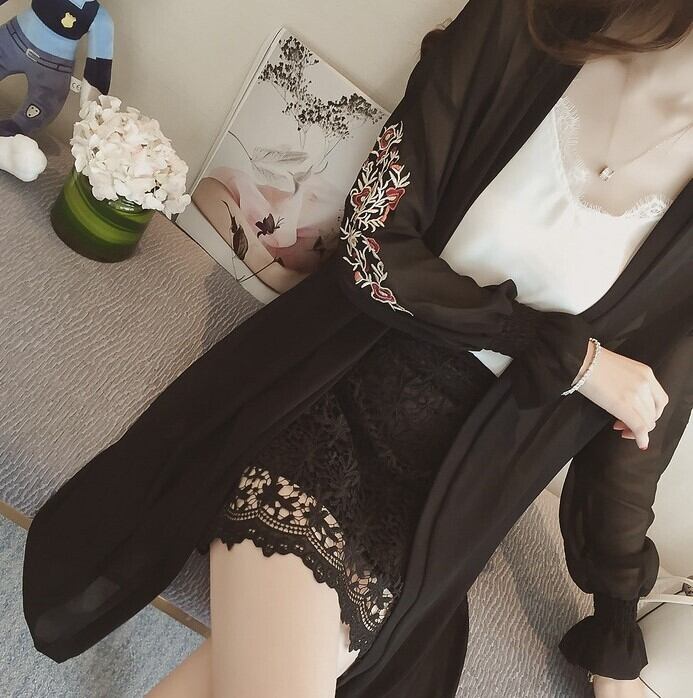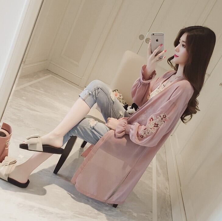 花の刺繍が可愛らしいロングカーディガン。