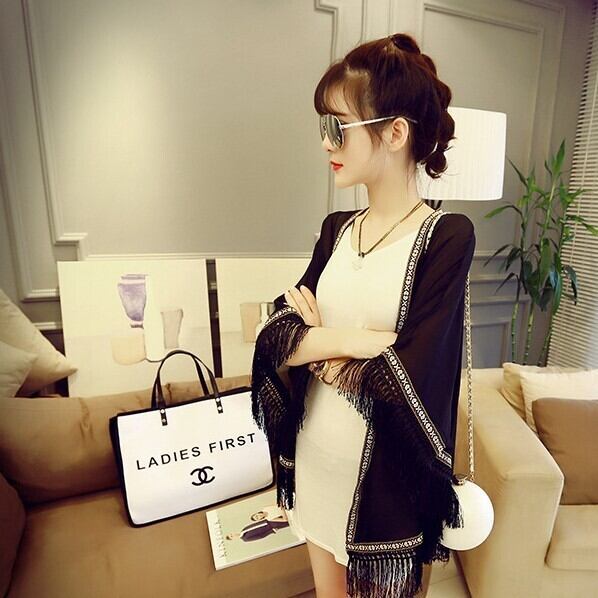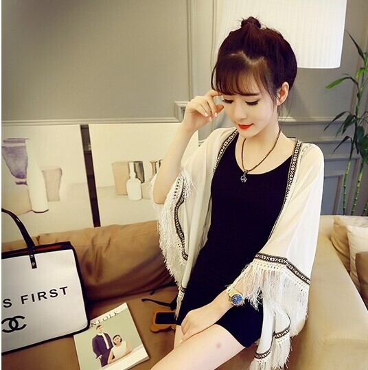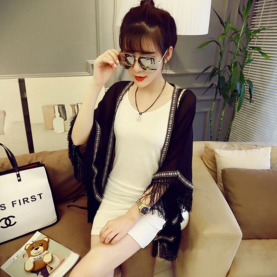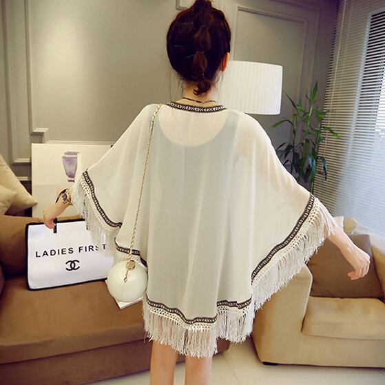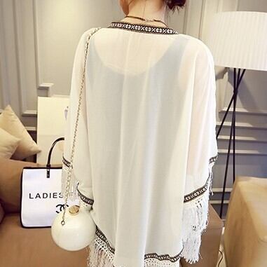 トップス アウター 日焼け防止 カーディガン エスニック ビーチショール 七分袖 ラグランスリーブ Vネック フリンジ タッセル 刺繍 ミドル丈 シフォン ルーズフィット 大人可愛い きれいめ シンプル おしゃれ こなれ感 個性的 カジュアル 無地 柄 春 夏 10代 20代 30代 40代 レディース 女性用 OL 学生 デート お出かけ 休日 イベント 旅行 海 ビーチリゾート ホテル レストラン 着回し オルチャンファッション カジュアルコーデ サイズ S M L カラー ホワイト ブラック | Come to Store