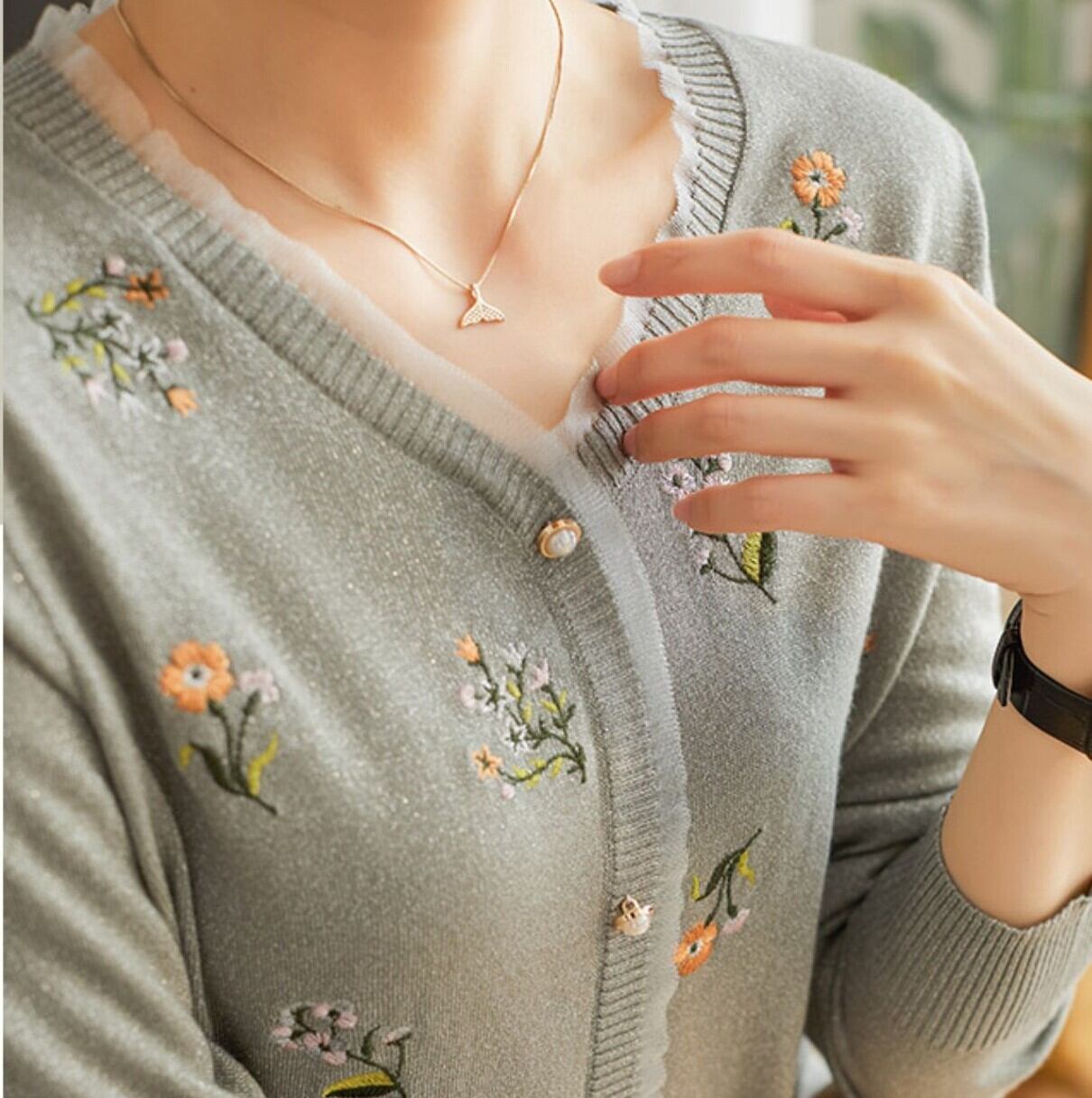 花の刺繍が可愛らしいカーディガン。