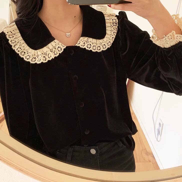 レース襟 レース袖 フェミニン ブラウス トップス ワンピース シャツ 袖あり 長袖 パフスリーブ 襟付き レース 前開き かわいい 大人可愛い きれいめ シンプル カジュアル 大人 上品 おしゃれ 大人女子 こなれ感 ラブリー キュート ガーリー モード系 エレガント モダン 無地 秋 冬 10代 20代 30代 40代 50代 60代 レディース オフィス ビジネス OL 通勤 学生 通学 デート お出かけ 休日 着回し 普段使い モテ トレンド 流行 インスタ映え S M L XL ブラック | Come to Store