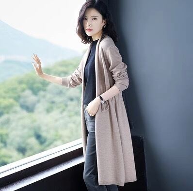 着丈が長めで体型もカバーしてくれるカーディガンです。