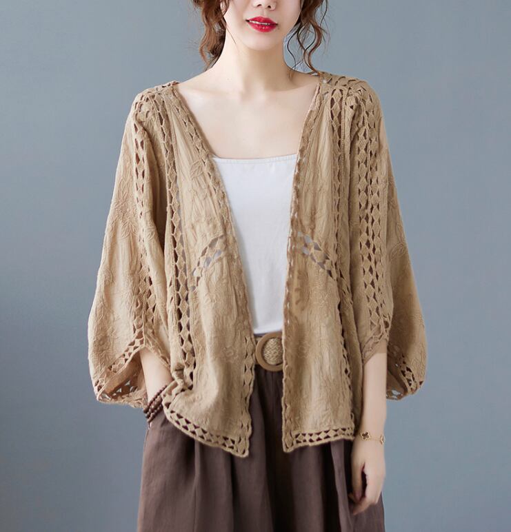 トップス カーディガン ミディアム丈 袖あり 七分袖 襟なし 刺繍 前開き 綿 かわいい 大人可愛い シンプル カジュアル 大人 おしゃれ お洒落 レトロ アジアン エスニック エキゾチック 大人女子 ルーズ 柄 花柄 夏 秋 20代 30代 レディース 女性用 通勤 デート お出かけ 公園デビュー 女子会 休日 リゾート 旅行 海 ホテル ガーデン レストラン 着回し 普段使い サイズ フリーサイズ 色展開 白 ホワイト 青 ブルー 茶色 ブラウン ベージュ カラバリ | Come to Store
