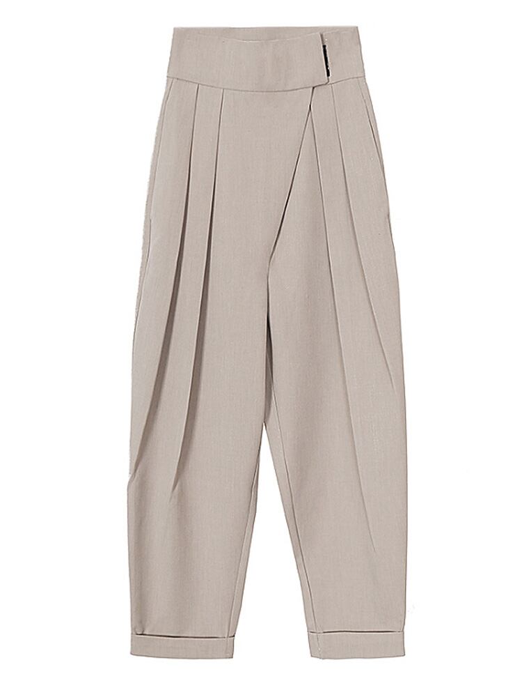 裾がほっそりとしたツータックテーパードシルエットパンツ。