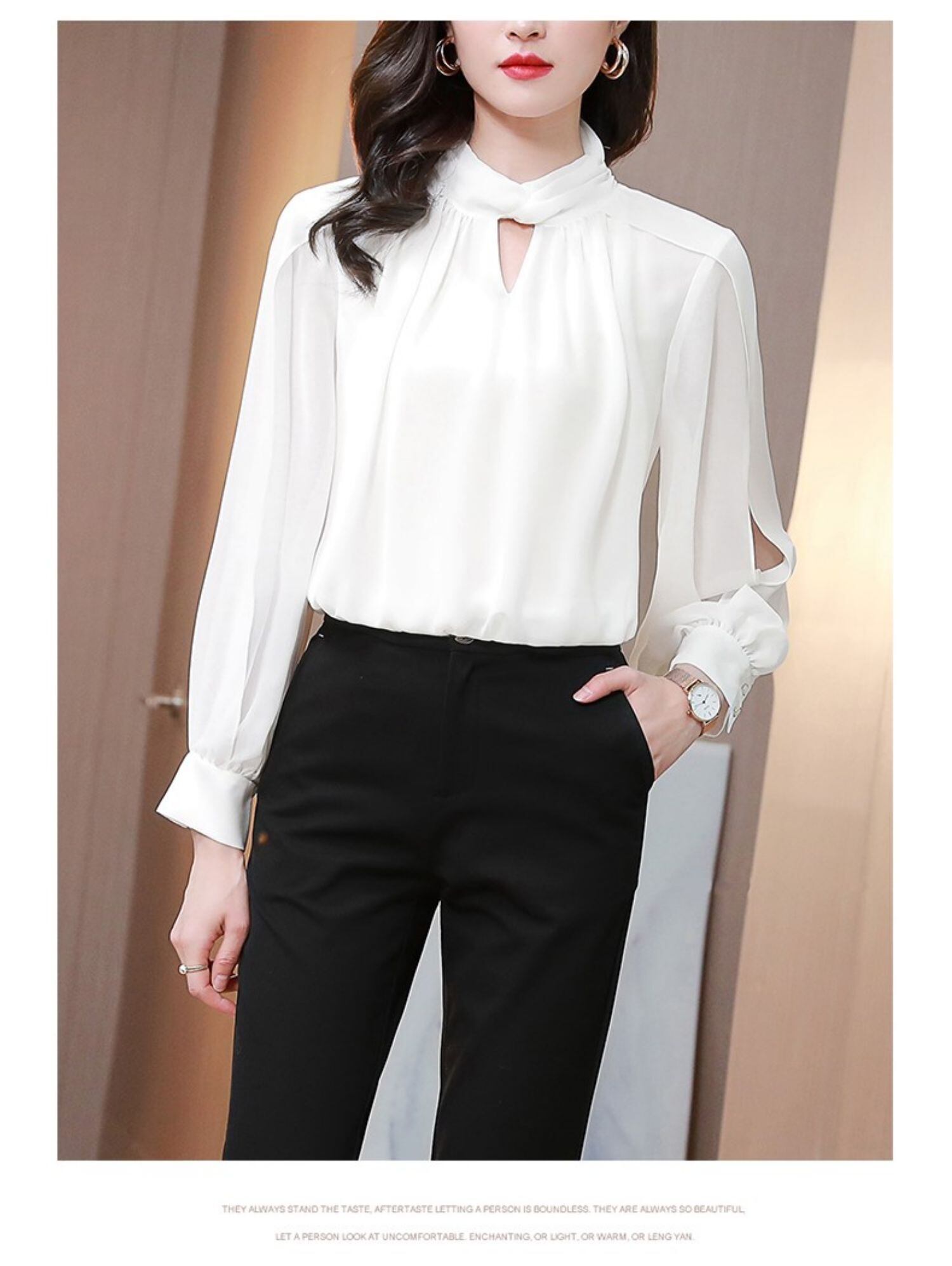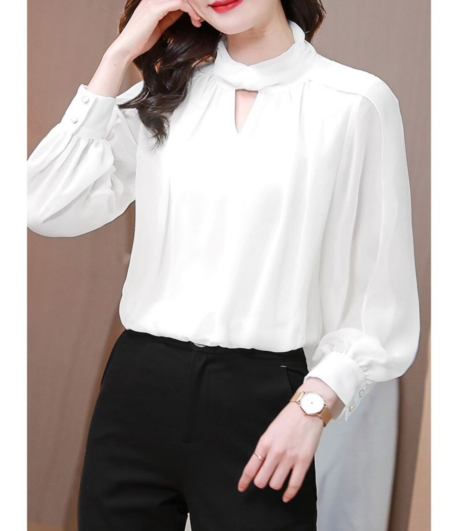 トップス ブラウス シフォンシャツ 長袖 ハイネック スタンドカラー ドレープ とろみ感 かわいい 大人可愛い 普段使い 着回し きれいめ エレガント 上品 おしゃれ 大人女子 こなれ感 ラブリー キュート モード系 モダン フェミニン フォーマル 無地 春 秋 冬 10代 20代 30代 40代 50代 レディース オフィス ビジネス OL 通勤 デート イベント 女子会 お出かけ ショッピング 休日 パーティー 着回し 普段使い サイズ M L XL 2XL 3XL カラー ホワイト | Come to Store