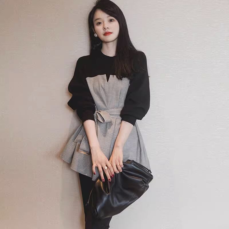 ワンピース デート プルオーバー ワンピドレス ベルト付き ウエストスリム Aラインスカートミニ丈 ショート丈 膝上 長袖 ボリューム袖 ラウンドネック 秋 冬 大きいサイズ ゆったり かわいい 大人可愛い きれいめ シンプル カジュアル 大人 上品 おしゃれ お洒落 大人可愛い 大人女子 こなれ感 ラフ ラブリー キュート ガーリー 個性的 モード系 エレガント モダン 主役級 存在感 無地 チェック柄 10代 20代 普段使い モテ S M L XL 2XL 3XL 4XL ブラック&グレー | Come to Store