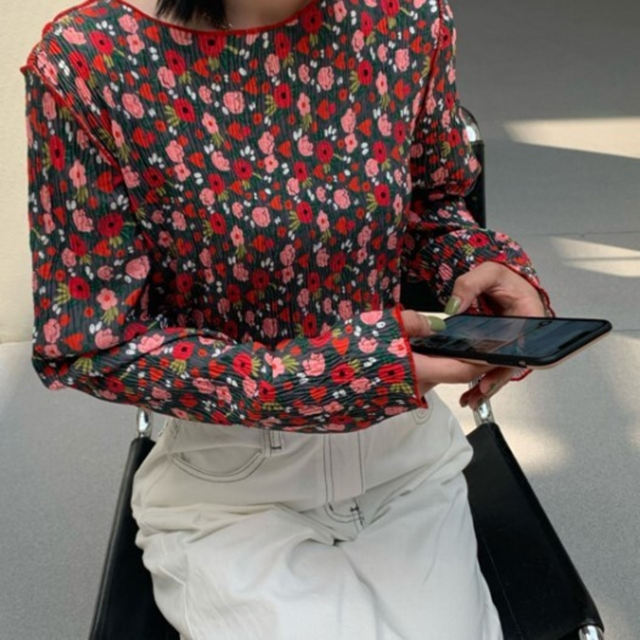 トップス シャツ ブラウス 袖あり 長袖 ラウンドネック 襟なし プリーツ ボトミングシャツ かわいい 大人可愛いきれいめ シンプル レトロ 上品 おしゃれ お洒落 大人女子 こなれ感 マニッシュ ラブリー エレガント カジュアル とろみ感 抜け感 花柄 春 秋 冬 10代 20代 30代 40代 50代 OL 通勤 学生 通学 デート ショッピング お出かけ 休日 着回し 普段使い オルチャンファッション フェミニンコーデ サイズ S M L XL 2XL カラー ブルー オレンジ レッド | Come to Store