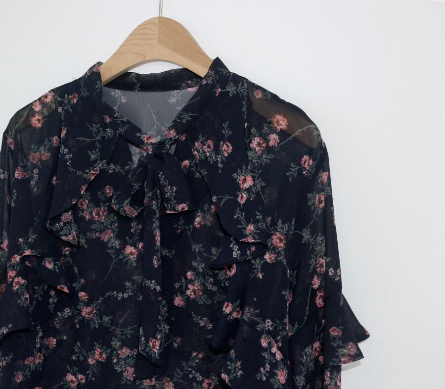 Vネック 花柄 シフォン ブラウス トップス シャツ 袖あり 長袖 フリル リボン 透け感 かわいい 大人可愛い きれいめ シンプル カジュアル 大人 上品 おしゃれ お洒落 大人女子 こなれ感 ラブリー キュート ガーリー モード系 エレガント モダン 主役級 存在感 とろみ感 抜け感 柄 春 夏 10代 20代 30代 40代 50代 60代 オフィス ビジネス OL 通勤 学生 通学 デート お出かけ 女子会 休日 着回し 普段使い 体系カバー トレンド 流行 インスタ映え ホワイト ネイビー | Come to Store