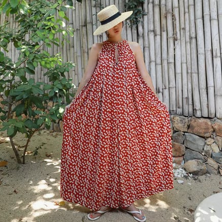 ホルターネックで襟なしのデザインは、おしゃれで女性らしい印象を与えます。フレアデザインで体型カバーにもなり自分の体型やスタイルに合わせたコーディネートが楽しめます。